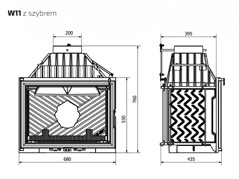 Каминная топка W11-18,1 кВт является классической топкой производимой заводом KAWMET по современным технологиям, топка выполнена из толстого чугуна класса EN-GJL- 200 и оборудована подводом наружного воздуха в камеру сгорания, встроенным шибером для регулировки процесса горения и дымоотведения, и более точной регулировкой подачи воздуха через нижнюю часть дверцы под колосниковую решетку, открыв ее на максимум, вы подаете к дровам оптимальное количество воздуха для быстрого розжига.