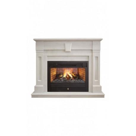 Новый каминокомплект очаг-электрокамин и портал Kellie исполнен в белом цвете старого камня. Выполнен из полистоуна. Цвет WTF-715 Представлен с очагом 3D Novara.