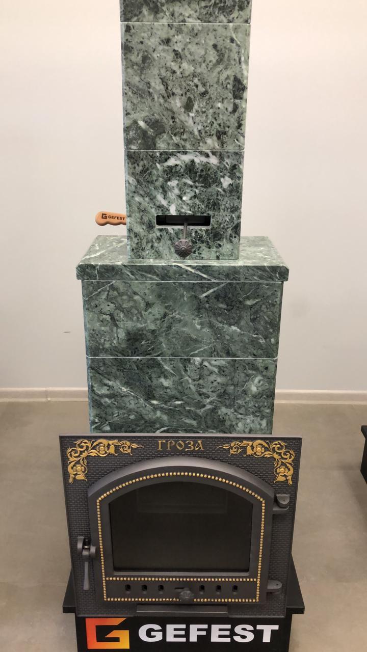 Если Вам требуется построить баню с настоящей русской парной - чугунная банная печь Гефест в облицовке из природного камня талькохлорита или змеевика является единственной альтернативой традиционным кирпичным банным печам. Печь Гефест в облицовке намного более компакта и проста в эксплуатации, не требует многочасовой(5-6часов) непрерывной предварительной топки - через 1-2 часа после растопки можно начинать банные процедуры, качества пара при этом будет одинаковым.