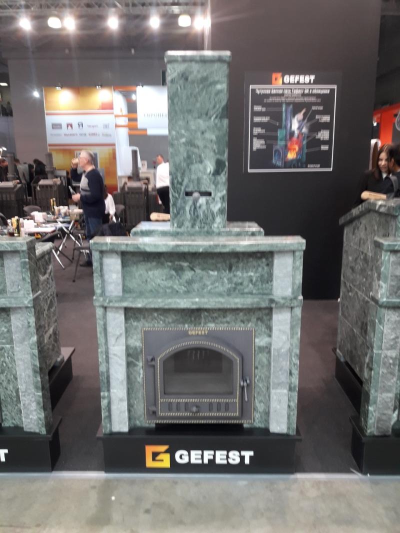 Печи Гефест в моделях облицовок «Президент» и «Русский пар» полностью закрыты в саркофаг из природного камня. По периметру облицовок, в нижней части, остаётся зазор высотой 5см, а в верхней части они снабжены поддавальной дверцей, которая при начале топки остаётся открытой. Холодный воздух, попадая внутрь через зазор, двигается снизу вверх, проходя через конвекционные ребра печи, и нагреваясь, выходит через поддавальную дверцу.