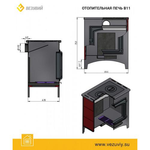 Отопительная печь «Везувий» В11 предназначена для установки в различных хозяйственных помещениях небольшого размера, садовых домиках, жилых помещениях временного проживания. Печь изготовлена из особопрочной котловой стали марки 09Г2С.
