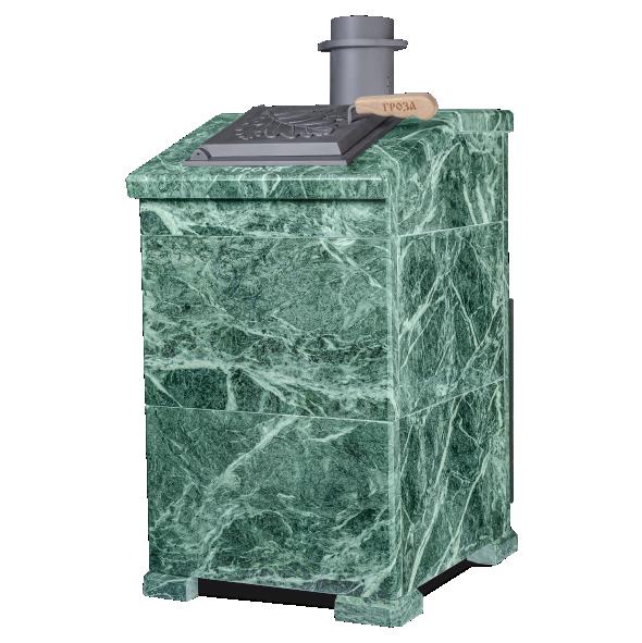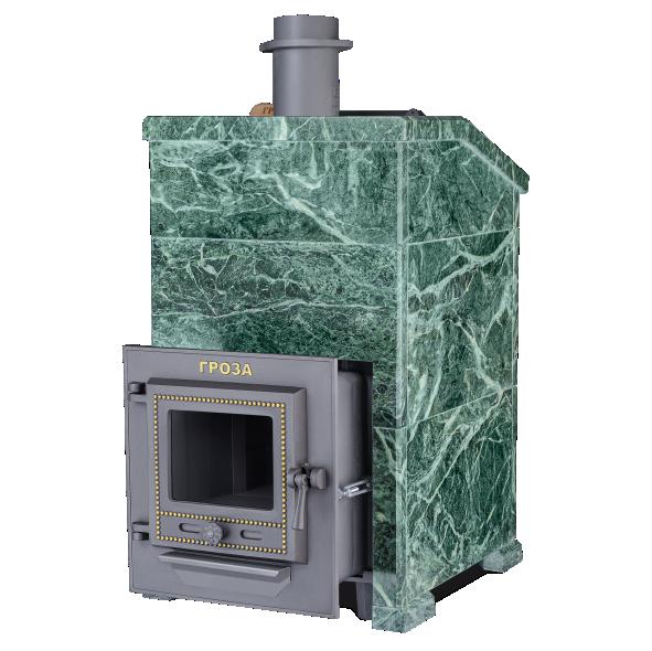 Чугунные банные печи ТМ «Гроза» — это современные печи, рассчитанные на малые и средние размеры парных. Печь имеет прочную сборную конструкцию, без резьбовых и сварных соединений, детали выполнены из легированного чугуна. Топка печей «Гроза» состоит из двух камер, разделенных пламегасителем. Радиаторные выступы каменки, направленные вглубь топки, увеличивают площадь контакта огня с каменкой и эффективность теплосъема. Для увеличения площади поверхности нагрева камней каменка снаружи оборудована чугунными шипами, направленными вверх. Между шипами укладываются банные камни или дополнительные чугунные заклады, такие как ядра и чугунные шишки. Сами чугунные шипы также являются частью заряда для лучшего испарения воды.