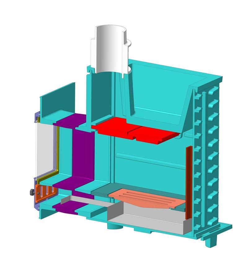 4) Повышена мощность теплового излучения за счет увеличенной высоты стенок топки