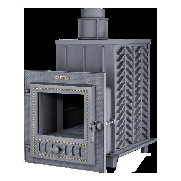 Гефест ЗК-30 (М)) - печь с усиленной каменкой большей массы, с единым углублением внутрь топки для дополнительной укладки чугунного заряда. Теплосъемные шипы, со стороны горения пламени, в разы увеличивают площадь соприкосновения огня с каменкой и ускоряют передачу тепла, а также способствуют лучшему дожигу смешивая потоки пламени и воздуха поступаемого из воздушника. Эти усовершенствования значительно повышают мощность парообразования печи и выдают большее количество пара при непрерывной подаче воды. Каменка печей Гефест-ЗК является незаливаемой.