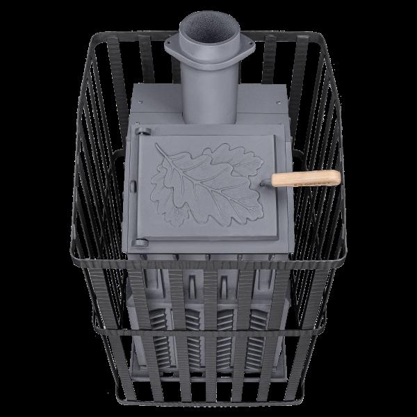 Печь легко модернизируется до полноценной печи предназначенной для Русской бани путем замены стальной сетки на каменную облицовку без демонтажа дымохода.