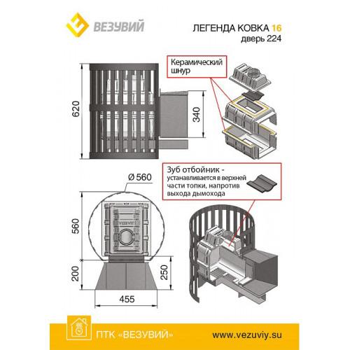 Банная чугунная печь Легенда Ковка 16 (224) укомплектована чугунной герметичной дверцей Везувий 224 с жаропрочным стеклом «SHOT ROBAX». Конвекционно-вентилируемый кожух "Ковка" изготовлен из металлической текстурированной полосы покрашенной термостойкой краской и покрытая патиной «Бронза».