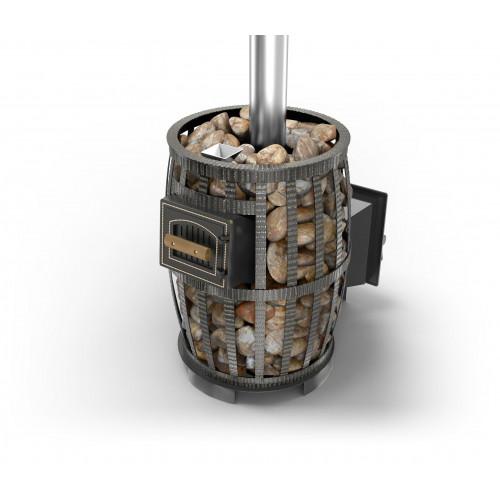Все элементы топки отлиты из чугуна и соединены между собой с помощью болтового соединения через термостойкий шнур и герметик. Закрытая каменка изготовлена из жаростойкой высоколегированной нержавеющей стали 4 мм. Вес камней в закрытой каменке 30-45 кг.