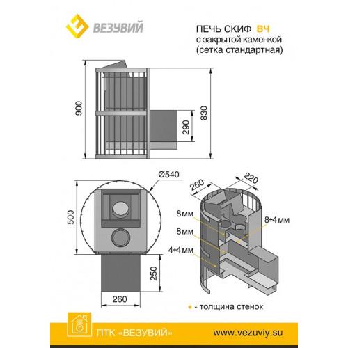 В верхней части печи установлена закрытая каменка, камни в ней нагреваются до 400°С, что позволяет достичь мелкий дисперсионный пар. Топка изготовлена из специальной конструкционной стали, толщина топки в местах наиболее подверженные температурному воздействию достигает 12 мм.