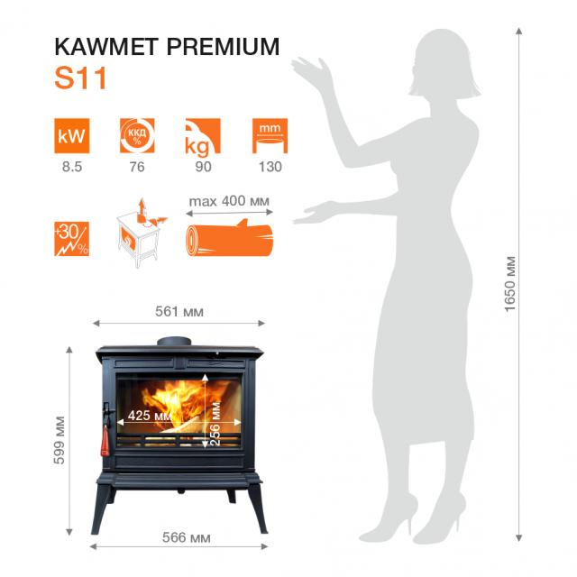 Чугунная печь KAWMET Premium S11 (8,5 кВт) это печка польского завода KAWMET премиум класса у которой отличный дизайн и продвинутая, современная конструкция, топка используется для отопления помещений, а также как предмет интерьера. Имея более 38-летний опыт в сфере чугуна, новые печки KAWMET серии Premium славятся своей прочностью, надежностью и красотой.