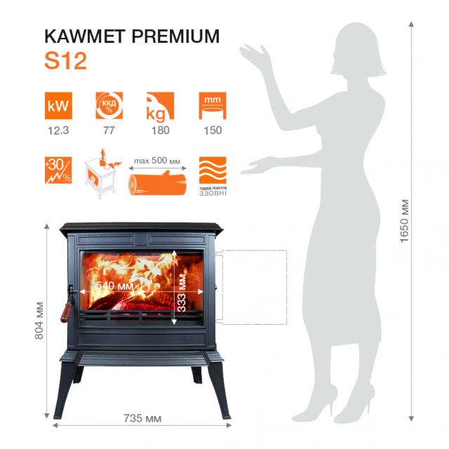 Чугунная печь KAWMET Premium S12 (12.3 кВт) это печка польского завода KAWMET премиум класса у которой отличный дизайн и продвинутая, современная конструкция, топка используется для отопления помещений, а также как предмет интерьера. Имея более 38-летний опыт в сфере чугуна, новые печки KAWMET серии Premium славятся своей прочностью, надежностью и красотой.