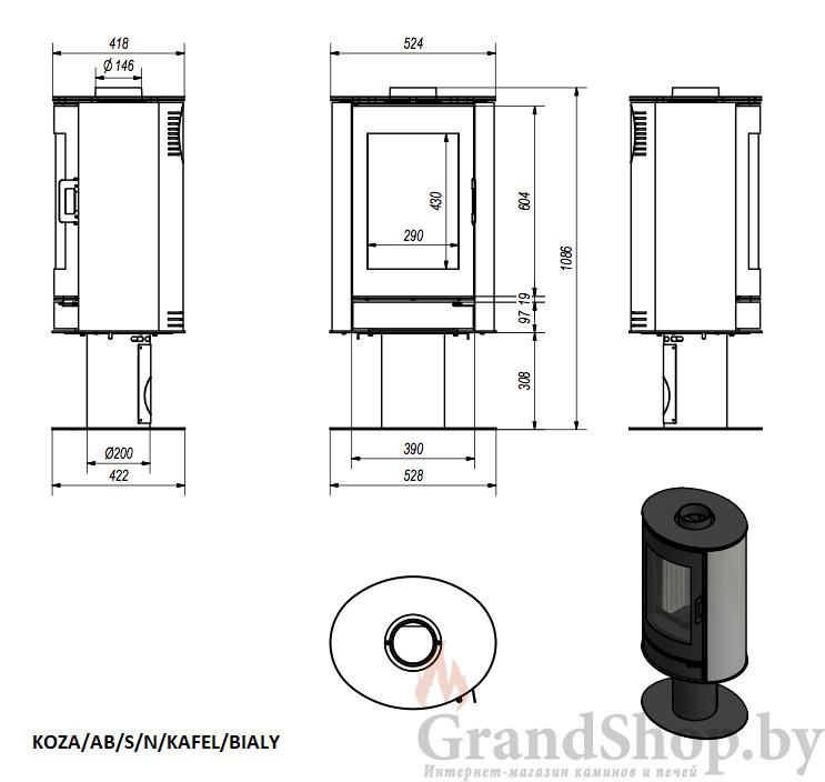 Стальная каминная печь-камин Koza/AB/S/N/KAFEL/BIALY - это топка конвекционного типа в которой процесс охлаждения и теплообмена проходит естественным путем.