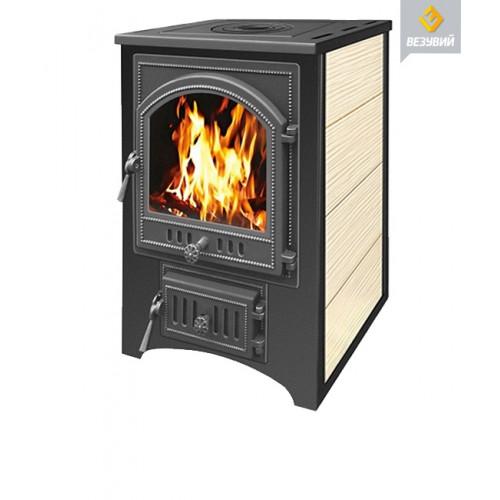 Печь - Камин Везувий ПК -01 (205) с плитой, бежевый 12 кВт (200 м3) ⌀115 мм