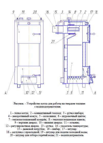Модифицированный твердотопливный котел КСТ-20-01 с регулятором тяги кроме отопления предназначен и для горячего водоснабжения.