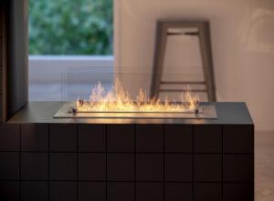 Кроме того, камера кожуха под горелкой предназначена для компенсации давления, которое может быть создано при возможном перетекании топлива. Эта система обеспечивает безопасное использование камина. Благодаря этим решениям можно встраивать камин даже в некоторые виды мебельных панелей. Высококачественная нержавеющая сталь обеспечивает качество и долговечность, а шлифованная поверхность и скошенный край обеспечивают изящный вид.