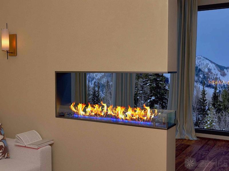 Встраиваемый сквозной торцевой биокамин Zefire - отличное решение для оформления интерьера как жилого дома или современного офиса, так и для ультрамодного кафе и ресторана. Сквозной торцевой очаг - это идеальный предмет интерьера.