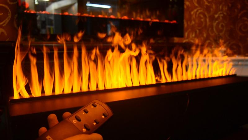 Электрокамин CASSETTE 1000 поставляется с пультом дистанционного управления для регулировки интенсивности пламени и регулировки громкости звукового эффекта потрескивания дров